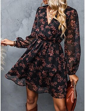 dámské šaty pro volný čas společenské šaty s květinovým potiskem ve výstřihu minišaty stylové ležérní denní rande s dlouhým rukávem letní