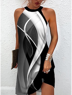 Dámské mini šaty malé šaty malé šaty sundress letní šaty halter neck šaty aktivní móda streetwear venkovní prázdninové každodenní pravidelný střih ombre barevný blok mramor bez rukávů halter