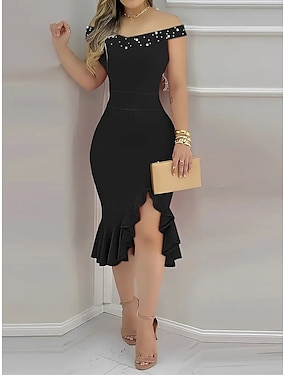 Dámské Dlouhé šaty Maxi šaty Šaty na párty Bodycon Elegantní Klub Párty Narozeniny Volány Studené rameno Běžný Bez vzoru Bez rukávů Popruhy Černá