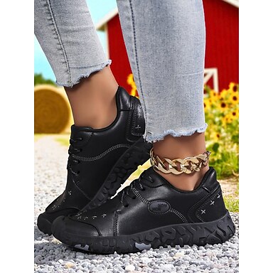 Dámské Ležérní Denní Chůze Šněrování Rovná podrážka Oblá špička sportovní Na běžné nošení Konzervativní Létající tkaní Povaleč Černá Bílá Khaki