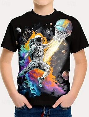 Chlapecké 3D Astronaut Tričko Košilky Krátký rukáv Léto Jaro Módní Základní Děti 4-12 let Tričkový Venkovní Ležérní Denní Běžný