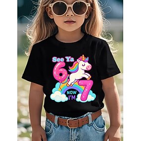 Dívčí 3D Grafika Jednorožec Vtipný slang 67 Tričko Košilky Krátký rukáv 3D tisk Léto Jaro Sportovní Módní Šik ven Děti 4-12 let Tričkový Ležérní Denní Venkovní Běžný