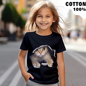 Dívčí 3D Kočka Košilky Košile Krátký rukáv 3D tisk Léto Aktivní Módní Roztomilý Polyester Děti 3-12 let Tričkový Venkovní Ležérní Denní Běžný