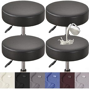 4ks strečových nepromokavých potahů na barové stoličky z pu kůže, kulaté potahy na barové stoličky, potahy na kulaté barové stoličky s gumičkami