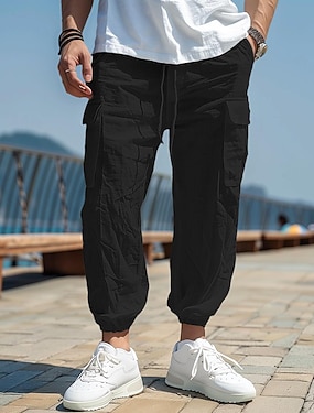 Pánské Kargo kalhoty Plátěné kalhoty Kalhoty Letní kalhoty Plážové kalhoty Šňůrky Elastický pas Multi kapsa Bez vzoru Pohodlné Prodyšné Plná délka Ležérní Denní Dovolená Módní Klasický styl Černá Bílá