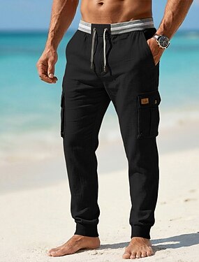 Pánské Kargo kalhoty Letní kalhoty Plážové kalhoty Gázové kalhoty Šňůrky Elastický pas Multi kapsa Bez vzoru Pohodlné Yumuşak Plná délka Denní Venkovní Dovolená prázdniny Módní Černá Bílá Neelastické