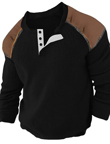 Pánské Waffle Henley košile Tričko Top Barevné bloky Henley ulice Dovolená Dlouhý rukáv Oblečení Módní Designové Základní