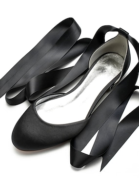 Dámské Svatební obuv Bez podpatku Párty Mašle Nízký podpatek Palec do špičky Elegantní Satén Černá Bílá Křišťálový