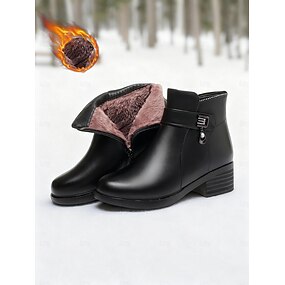 Dámské černé kožené kotníkové boty s vlněnou podšívkou – zapínání na zip, teplé a pohodlné zimní boty pro běžné nošení a outdoor