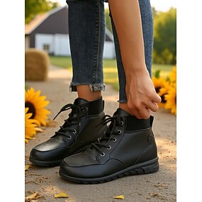 Dámské kotníkové boty na šněrování s žebrovaným límcem – stylová outdoorová obuv na návštěvy farem, slunečnicových polí a podzimní procházky