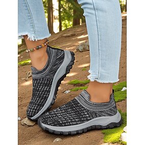 Dámské černé běžecké tenisky flyknit – nazouvací turistické boty s polstrovanou podrážkou pro outdoorová dobrodružství a lesní procházky
