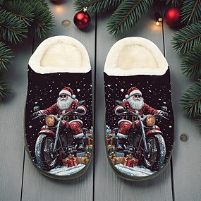 Pánské vánoční pantofle s motivem Santa Clause - zimní říše divů se Santou, pantofle s měkkou fleecovou podšívkou pro útulné večery, vánoční večírky a pohodlí domova.