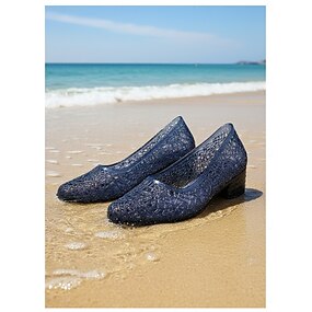 Dámské třpytivé žluté želé lodičky - prodyšné nízké podpatky s dutým mřížkovaným vzorem a třpytkami na dovolenou u pláže, letní svatby &oblečení pro přímořské letoviska