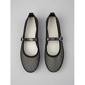 Dámské béžové síťované balerínky Mary Jane – prodyšné a lehké pohodlné boty s nastavitelným páskem a protiskluzovou podrážkou, ležérní obuv na chůzi, do zahrady i na každodenní nošení