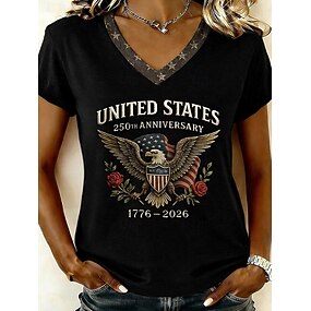 Den nezávislosti Americký výroční patriotický dámský tričko potisk grafika vlajka vintage stylový klasický krátký rukáv V krk běžné topy denní modrý bílý námořnický modrý léto jaro