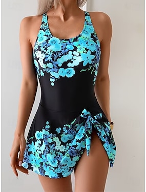 Dámské Plavky Jeden kus Monokini Sukně Plavky Zaštíhlující Vysoký pas Štíhlý Volná záda Elegantní prázdniny Květinový Grafika Do U Bez rukávů Plavky