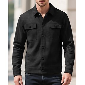 Pánské Wafflová košile Košile bunda Zimní bunda Bez vzoru Dovolená Denní nošení Černá Bílá Khaki Šedá Dlouhý rukáv Klopa Podzim Zima Oblečení Kapsy