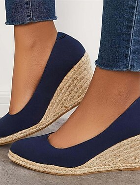 dámské černé plátěné lodičky na klínku – boty na platformě espadrilky s pletenou jutovou podrážkou pro letní ležérní outfity, dovolenou na pláži i každodenní nošení