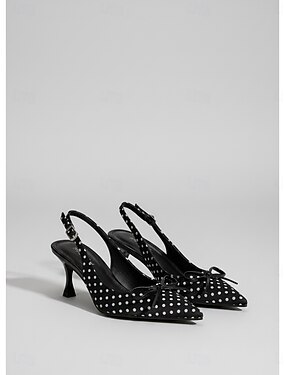 Dámské elegantní černé puntíkované lodičky s rolákovým zapínáním - elegantní vysoké podpatky se špičatou špičkou a mašlí &nastavitelný zadní popruh pro kancelářskou práci, každodenní styl