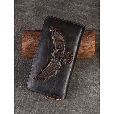 Dámská dlouhá peněženka z pravé kůže s vyřezávaným orlem, vintage psaníčko na zip pro stylové dámy, ideální pro každodenní nošení i zvláštní příležitosti.