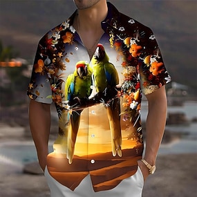 Pánské Papoušek Tropické rostliny Květiny Havajská košile Košile na knoflíky Aloha košile Krátký rukáv Havajské Dovolená Léto Jaro Přehnutý 3D tisk košile s límečkem Jedna přední kapsa Vodní modr