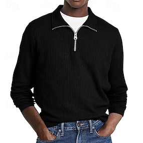 Pánské Svetrová mikina Polo na zip Dovolená ulice Zip Dlouhý rukáv Módní Základní Bez vzoru Móda Jaro & podzim Celý rok Volný potah Černá Bílá Khaki Tmavě šedá Svetrová mikina