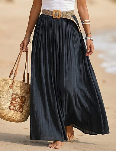 Dámské Dovolená sukně Sukně z imitace bavlny a lnu Módní Na běžné nošení Dlouhé délka léto Maxi Vysoký pas Sukně Bez vzoru Nabírané šaty Splývavý Elastické Denní Plážové Vodní modrá Jablkově zelen