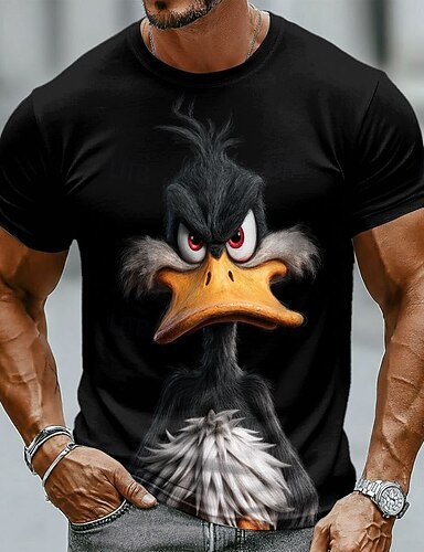 Pánské tričko s realistickým 3D potiskem s rozzlobeným, mrzutým černým kachním, streetwear, slim fit, ležérní, denní nošení, značkové oblečení, velikosti S M L XL XXL XXXL