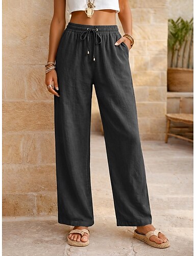 Dámské Bavlněné plátěné kalhoty Letní kalhoty Kalhoty prázdniny Základní Běžné Denní Plná délka Přírodní Bez vzoru Šňůrky Přední kapsa Pohodlné Prodyšnost Neelastické Denní Jdeme ven Víkend Vodn