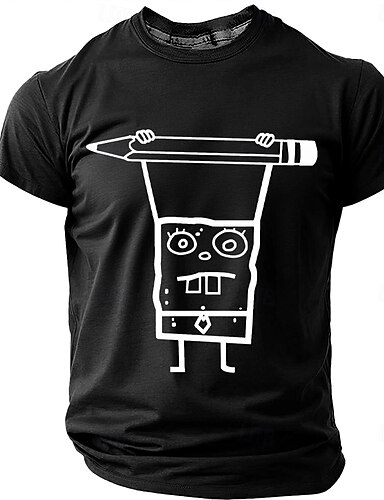 Pánské vtipné stickman s obří kresbou tužkou, meme, retro kreslený styl, tričko s grafikou, kulatý výstřih, krátký rukáv, nostalgická skica, umění, dárek pro muže, tyrkysová, značkové oblečení