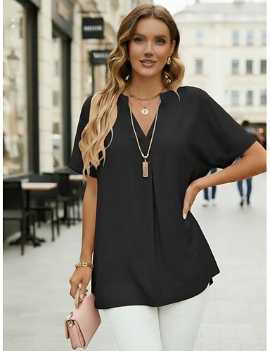 Dámské Halenka Šifonové topy Nabírané šaty Bez vzoru Aktivní stylové Poloviční rukáv Tričkový Běžné topy Denní Dovolená Jdeme ven Černá Bílá Světle zelená Fialová Námořnická modř Léto Jaro