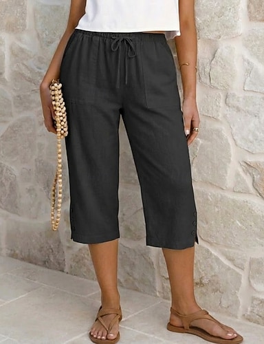 Dámské Capri kalhoty Kalhoty Letní šortky 100% Bawełna prázdniny Šik ven Základní Telecí délka Přírodní Bez vzoru Kapsy Prodyšnost Yumuşak Pohodlné Elastické Ležérní Denní Denní nošení Černá Bíl