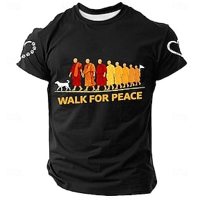 Pánská pochodová cesta za mír text mniši linie stopa otisk tlapky aloka pes silueta buddhistický všímavost černé tričko s krátkým rukávem kulatý výstřih léto ležérní móda oblečení oblečení velikosti S