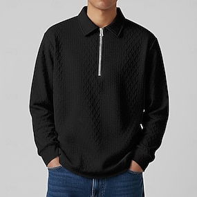 Pánské Waffle Polo košile S texturou Ležérní Venkovní Zip Čtvrtletní zip Dlouhý rukáv Módní Moderní Pevná barva S texturou Zapni Jaro & podzim Celý rok Běžný Černá Bílá Fialová Námořnická mod