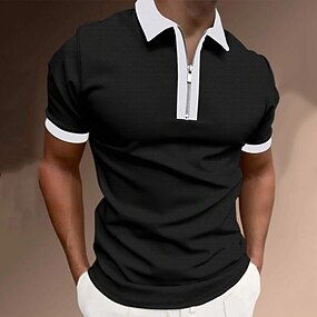 Pánské Polo na zip Polo trička Ležérní Dovolená Klopa Čtvrtletní zip Krátký rukáv Módní Základní Bez vzoru Čtvrtletní zip Léto Běžný Černá Bílá Světlá růžová Rubínově červená Hnědá Tmavě šedá Polo na