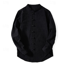 Pánské Košile plátěná košile Čínská košile s límečkem Košile s mandarinkovým límečkem Košile pro volný čas Košile na knoflíky Bez vzoru Dovolená Havajské Černá Bílá Světle zelená Růžová Dlouhý rukáv