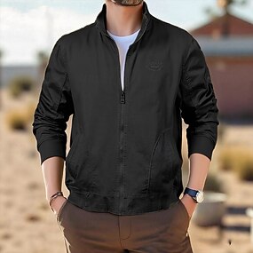 Pánské Košile bunda Zimní bunda Bez vzoru Dovolená Denní nošení Černá Armádní zelená Dlouhý rukáv Stojáček Podzim Zima Oblečení Zapni