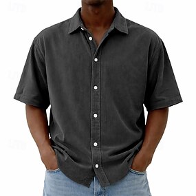 Pánské Košile Struktura Košile pro volný čas Kordurová košile Košile na knoflíky Vodní modrá Černá Bílá Světle zelená Rubínově červená Krátký rukáv Bez vzoru Košilový límec Ležérní Denní Oblečení