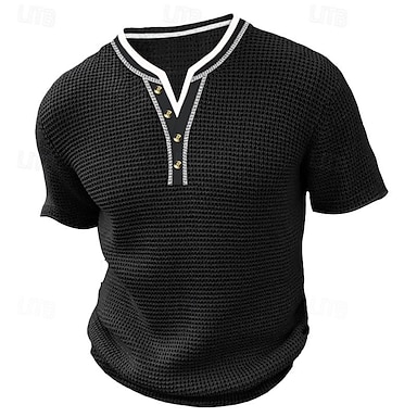 Pánské Waffle Henley košile Trička Krátký rukáv Pevná barva Na běžné nošení Knoflíky Henley Venkovní Ležérní Denní Léto Černá Bílá Žlutá Tričko Henley