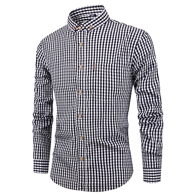 Pánské Košile pro volný čas Košile na knoflíky Kostkované košile Černá Červená Tmavomodrá Světle modrá Dlouhý rukáv Pléd Hranatý Dovolená Denní nošení Tlačítko dolů Oblečení Bavlna Módní Pro voln