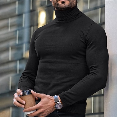 Pánské Rolák Pulovrový svetr Rýhovaný Plést Standardní Úplet Bez vzoru Rolák Moderní soudobé Úzký střih Práce Denní nošení Oblečení Podzim zima Fialová Černá M L XL