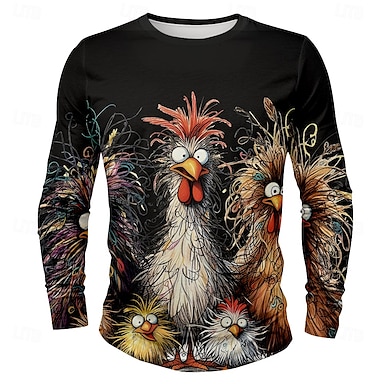 Pánské kuřátko Legrační Tričko Dlouhý rukáv tričko 3D tisk Tričkový Košile Designové Retro ulice Ležérní Denní Černá Bílá Žlutá Léto Jaro Podzim Oblečení S M L XL XXL XXXL