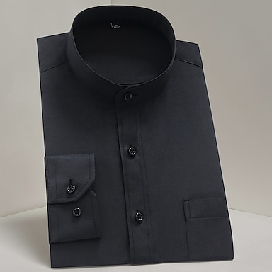 Pánské Čínská košile s límečkem Košile s mandarinkovým límečkem Košile k obleku Košile s límečkem Košile na knoflíky Bez vzoru Svatební Párty Černá Bílá Námořnická modř Dlouhý rukáv límec dědečka