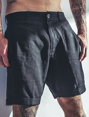 Pánské Kraťasy Lněné šortky Knoflíky Kapsy Straight-Leg Bez vzoru Pohodlné Prodyšné Krátký Obchod Obchodní Černá Bílá