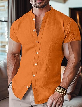Pánské Košile Letní košile Oblečení na pláž Košile na knoflíky Bez vzoru Ležérní Denní Černá Bílá Světlá růžová Oranžová Dlouhý rukáv Stojáčkový límec Jaro léto Léto Oblečení