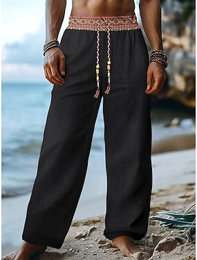 Pánské Plátěné kalhoty Kalhoty Letní kalhoty Plážové kalhoty Kapsy Šňůrky Elastický pas Bez vzoru Pohodlné Prodyšné Dovolená Denní Plážové Havajské Cikánský Černá Bílá