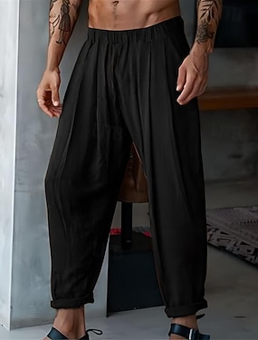 Pánské Plátěné kalhoty Kalhoty Letní kalhoty Knoflíky Přední kapsa Záhyby Bez vzoru Pohodlné Prodyšné Plná délka Ležérní Denní Streetwear Etnický styl Retro Volný Černá Bílá
