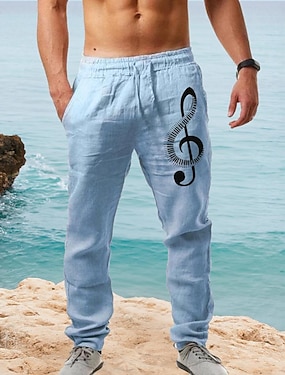 Pánské Letní kalhoty Elastický pas Grafické tisky Hudební nástroj Pohodlné Plná délka Venkovní Streetwear prázdniny Havajské Černá Bílá Lehce elastické