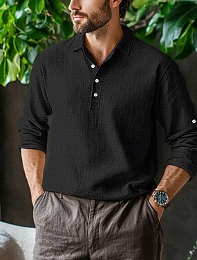 Pánské Košile Lněná košile Bavlněná košile Bez vzoru Denní Streetwear Černá Bílá Námořnická modř Hnědá Dlouhý rukáv Kulatý límeček Jaro Podzim Oblečení