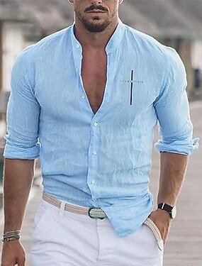 Pánské Košile plátěná košile Bavlněná lněná košile Bílá bavlněná košile Minimalistická košile Aloha Čínská košile s límečkem Kokosový strom Dovolená ulice Bílá Námořnická modř Šedá Světle modrá
